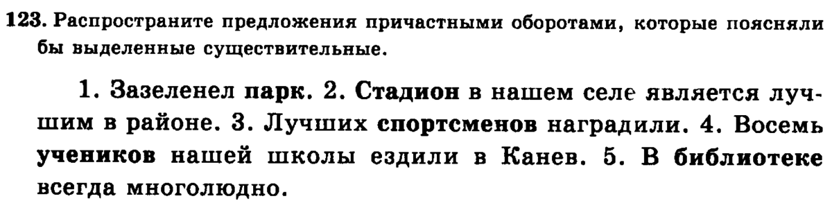Парк,ближайший к моему дому, зазеленел. Лучших спортсменов, показавших хорошие результаты, наградили. Восемь учеников нашей школы, написавших лучшие сочинения, ездили в Канаев. Стадион,новейший нашем селе, является лучшим в районе. В старейшей библиотеке всегда многолюдно.