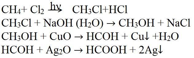 СН4 → СН3С1 → СН3ОН → НСОН → НСООН.