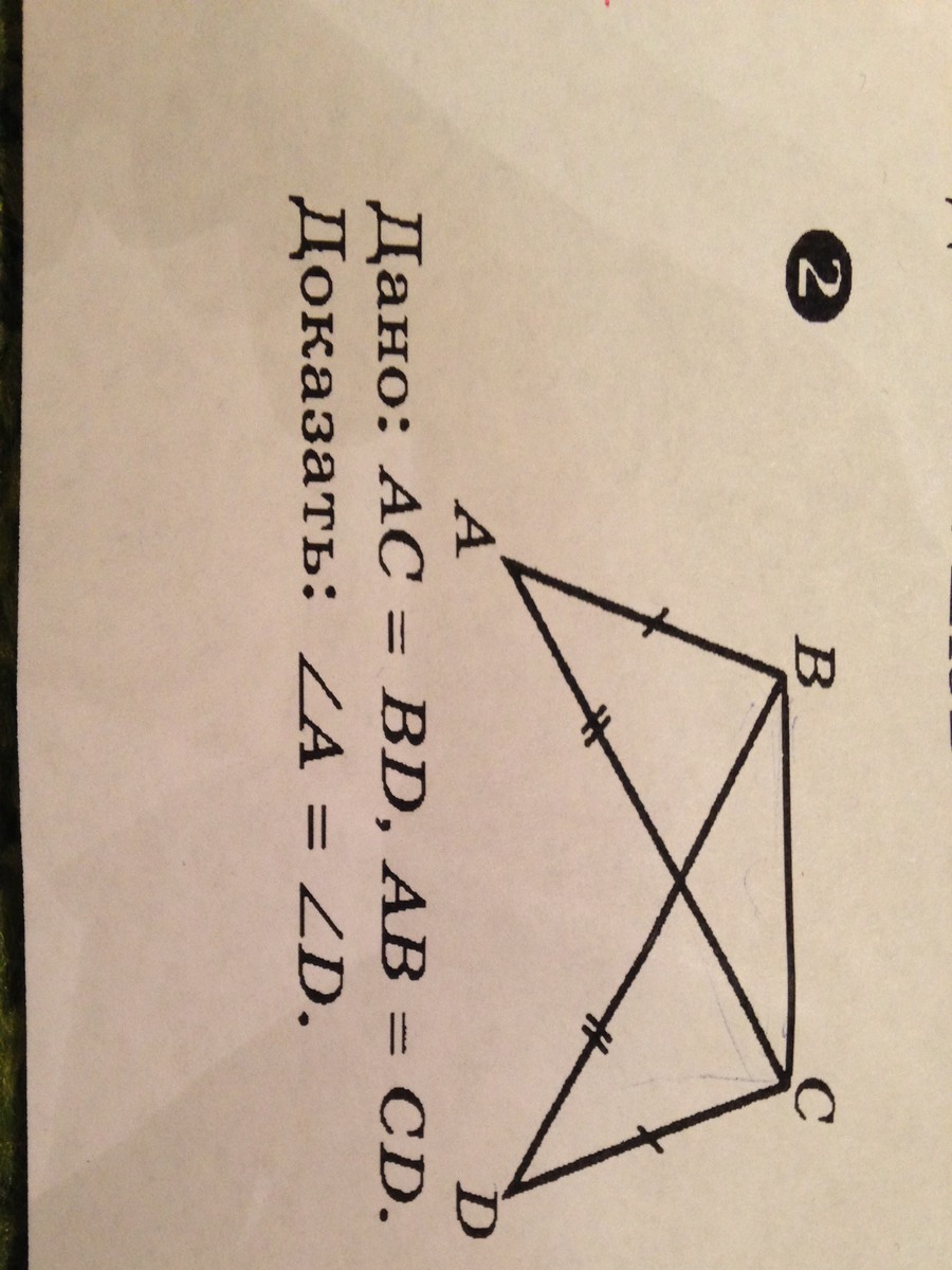 Значит, треугольники равны по трем сторонам. Отсюда, у равных треугольников соответствующие углы ( в данном случае напротив стороны ВС) равны.