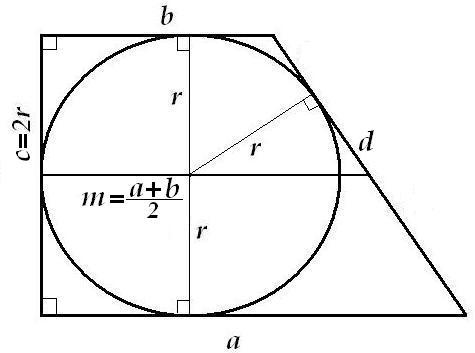 В трапецию можно вписать окружность только тогда, когда сумма длин оснований трапеции равна сумме длин её боковых сторон: