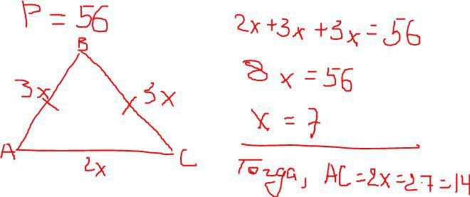 в равнобедренном треугольнике с периметром 56 см основание относится к боковой стороне как 2:3. Найдите Основание треугольника