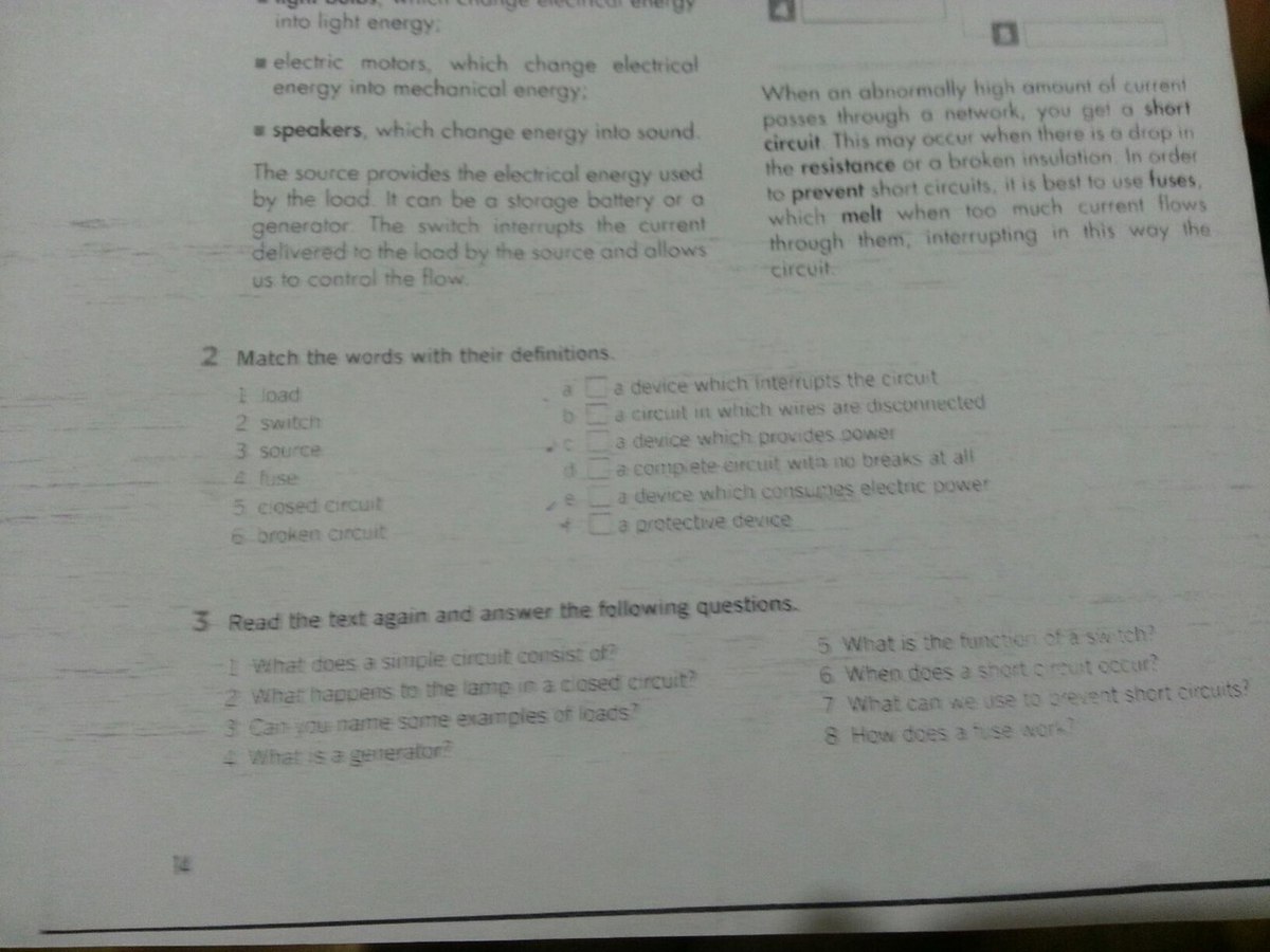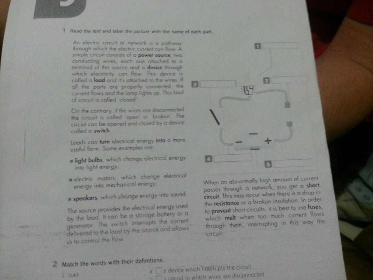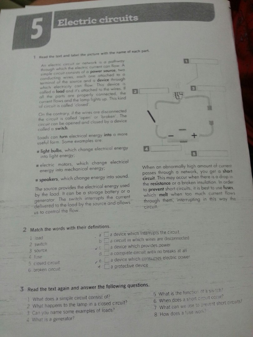 1. A simple circuit consists of a power source, two conducting wires, a load. Also there are a switch and a fuse.