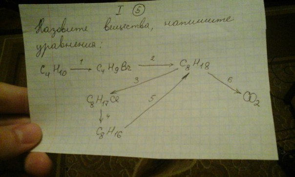 4) C8H17Cl + KOH(спирт.р-р) ---> C8H16 + KCl + H2O