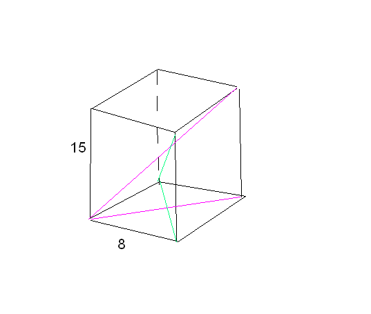 Большая диагональ параллелепипеда - √(15²+(8√3)²)=√417 см;