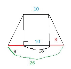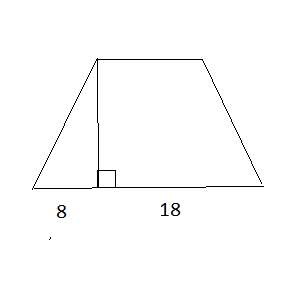 НАЙДИТЕ ОСНОВАНИЯ РАВНОБОКОЙ ТРАПЕЦИИ ВЫСОТА КОТОРОЙ, ПРОВЕДЕННАЯ ИЗ ВЕРШИНЫ ТУПОГО УГЛА ДЕЛЕТ БОЛЬШЕЕ ОСНОВАИЕ НА ОТРЕЗКЕ 8 СМ И 18 СМ