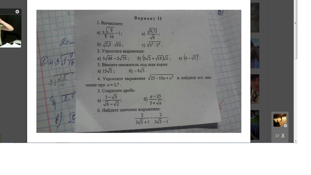 в) = √(72*0,01) = √9*√8*√0,01 = 3*0,1 =0,3