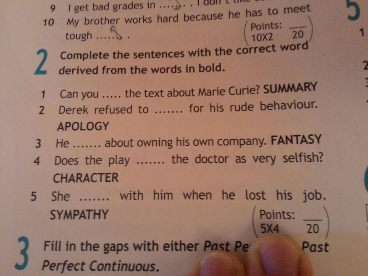 5. sympathised - Она сочувствовала ему, когда он потерял работу.