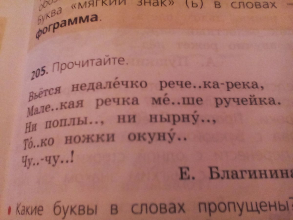 речеНЬка,малеНЬкая,меНЬше,поплыТЬ,нырнуТЬ,тоЛЬко,окунуТЬ,чуТЬ.