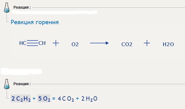 2C2H2+5O2=4CO2+2H2O это уравнение горение ацетилена, где в результате его горения образуется углекислый газ(CO2) и вода(H2O). стрелочка в право символизирует направление протекания реакции с лева на право, то есть от реагентов 2C2H2+5O2 к продуктам 4CO2+2H2O...