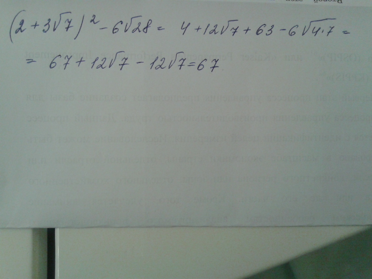 (2плюс3умножить на корень с семи) и все это в квадрате минус 6 умножить на корень 28