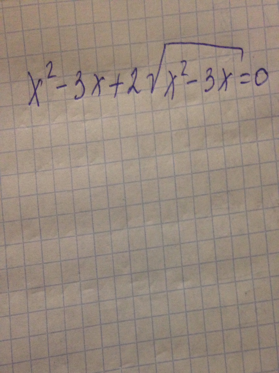 x²-3x+2√(x²-3x)=0 ОДЗ: х²-3x≥0 x(x-3)≥0 ⇒x∈(-∞;0])U[3;+∞)
