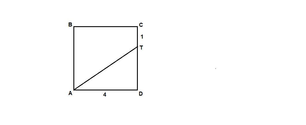 Длина стороны квадрата АВСD равна 4 см.Точка Т лежит на стороне СD и СT=1см.Вычислите длинну радиуса окружности,вписанной в треугольник ATD.