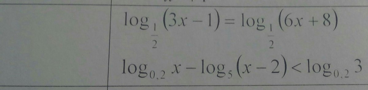 1) log₁/₂ (3x-1) = log₁/₂ (6x+8)