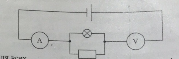 вольтметр надо включать параллельно лампочке и резистору а не последовательно как в схеме