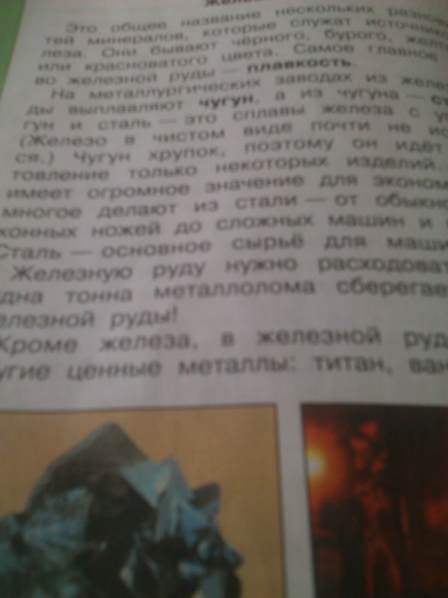 на металлурически заводах из железной руды выплавляют чугун.а из. чугуна - сталь.Железна руду нужно расходовать экономно.