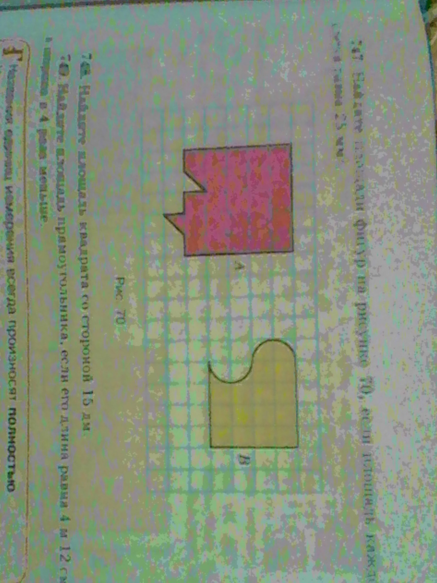 Найдите площади фигур на рисунке 70 если площадь каждой клетки равна 25 квадратным миллиметрам