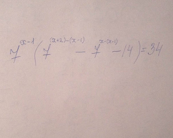 7^(x-1)*(7^( (x+2) -(x-1)) - 7 ^(x -(x-1)) -14 ) =34 ;