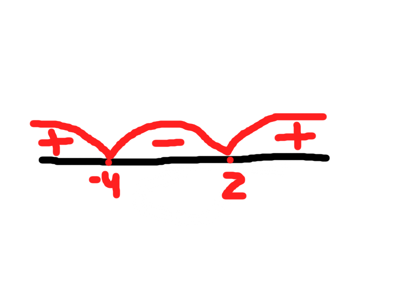 рисуем то что во вложениях, и заменяем мысленно x на число меньше -4 (хоть -1000)