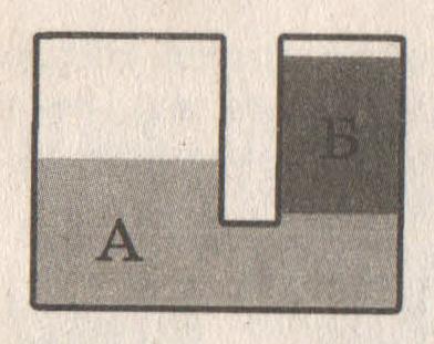 3) В одно колено сообщающихся сосудов налита ртуть, в другое вода. Какая жидкость ртуть? (см. рисунок, не расписывать)