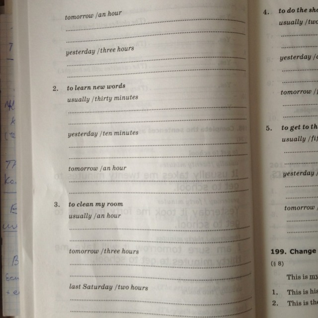 3. Last Saturday it took me two hours to clean my room.