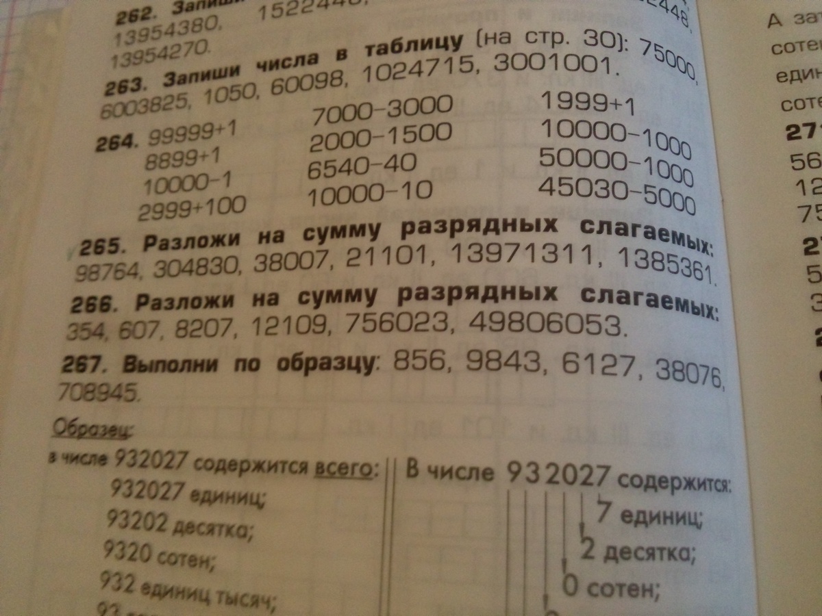 98764=90000+8000+700+60+4 304830=300000+4000+800+30 38007=30000+8000+7 21101=20000+1000+100+1 13971311=10000000+3000000+900000+700000+10000+300+10+1 1385361=1000000+300000+80000+5000+300+60+1