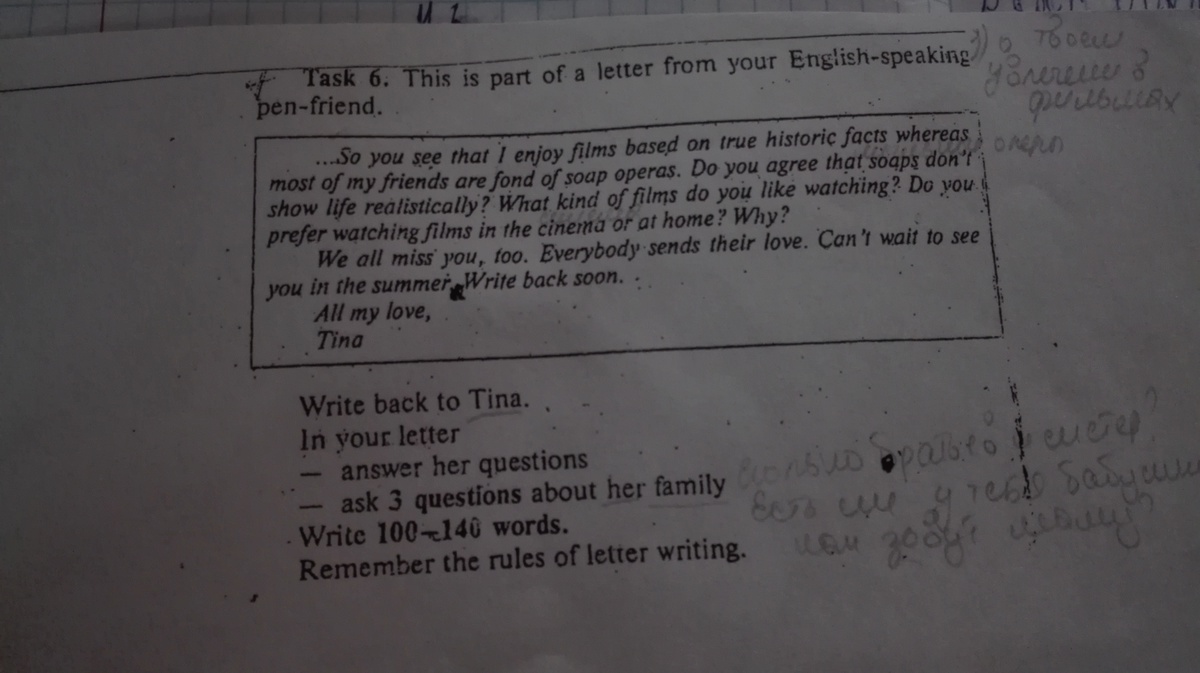 Мы все скучаем по тебе. Все посылают свою любовь. Не могу дождаться встречи с тобой летом. Жду ответа.