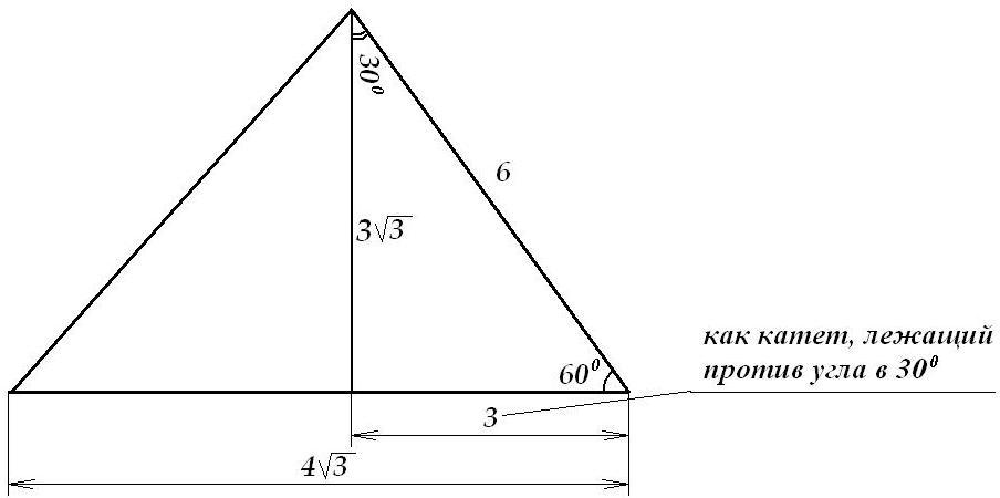 Получим прямоугольный треугольник с острыми углами 60° и 30°