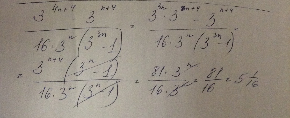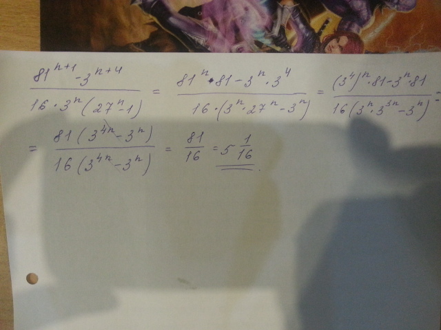 Ребят, решите пожалуйста, первый ответ отмечу как лучший!!!Плииииииииз!! 81^{n+1}-3^{n+4}/ 16*3^{n} ( 27^{n}-1)