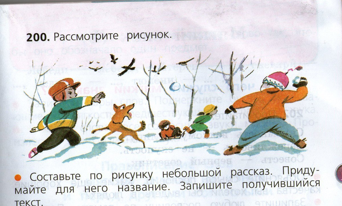 Даниил и Петя играю в снежки а Маша катается на санках а собачка пытается поймать снежок у девочки не получается кататся на санках потом собака помогла девочке