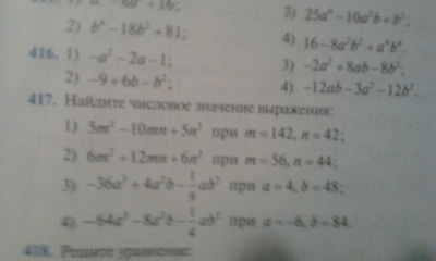 Решите номера 415,416,417 415-16 задание разложите на множетели а в 417 Найдите числовое значения выражения. Сделать только 2 и 4