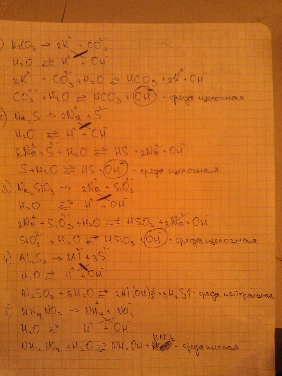 K2CO3 , Na2S , Na2SiO3 , AL2S3 , NH4No2 , (NH4)2S