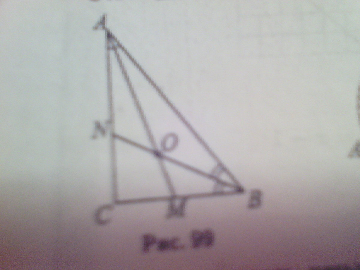 В прямоугольном треугольнике АВС с прямым углом С проведены биссектрисы АМ и ВN, пересекающиеся в точке О. Найдите величину угла АОВ