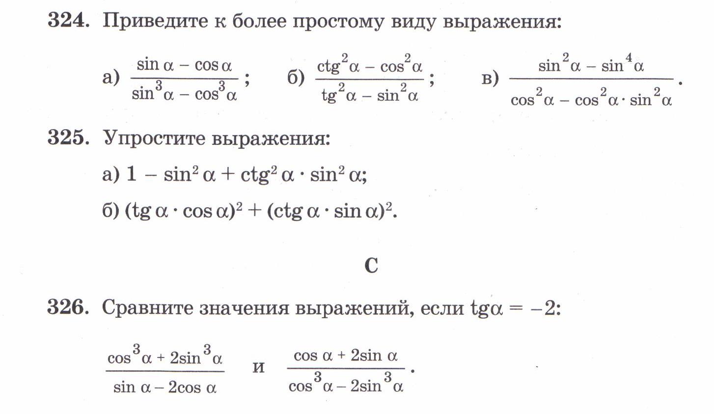 Пропустила, наверно, самую важную тему года. Формул в учебнике нет, страница вырвана.. Тема : Основные тригонометрические тождества. Поогите, пожалуйста решить эти номера : 324 - 328.