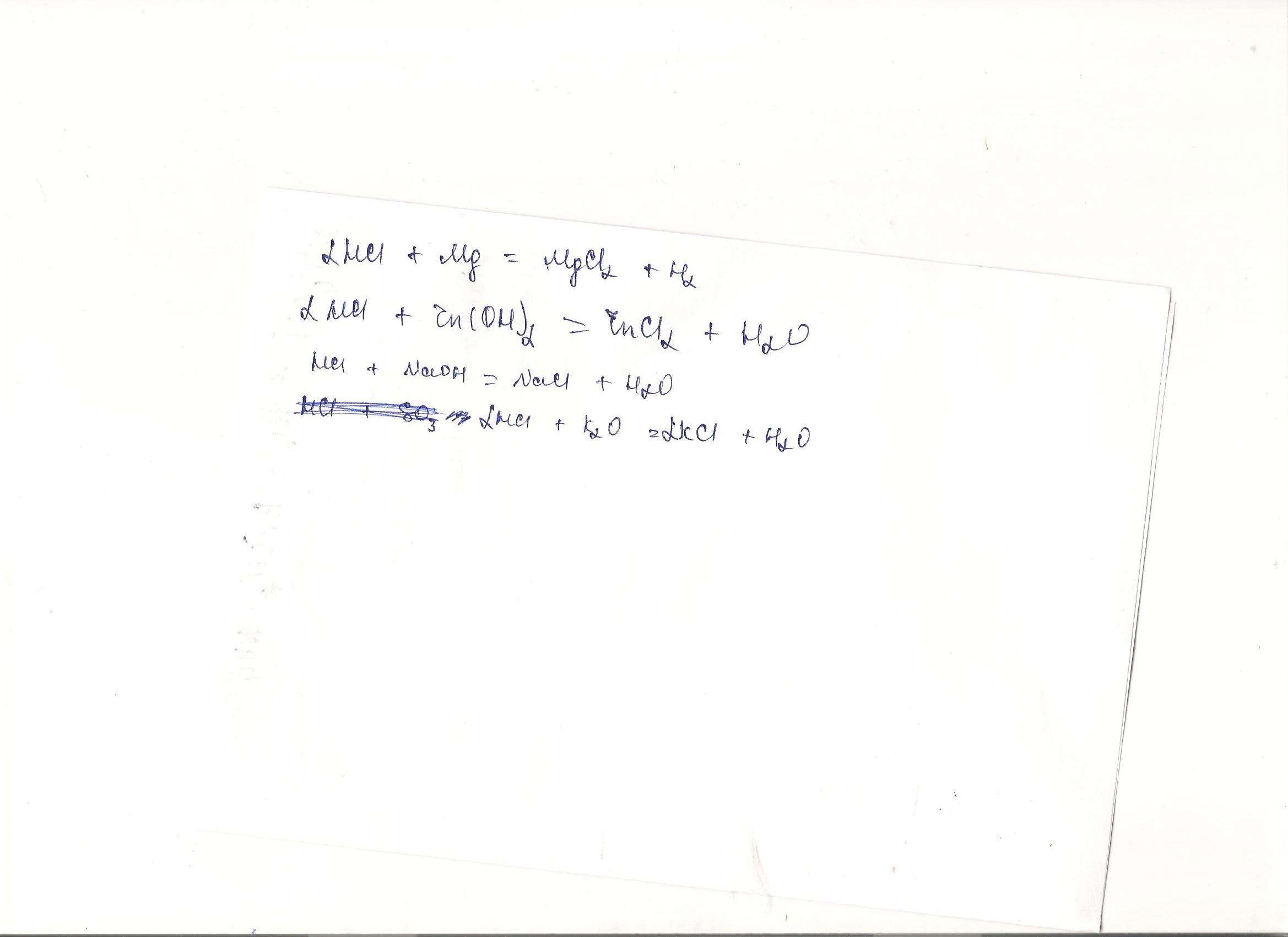соляная кислота реагирует с Mg, K2O, Zn(OH)2, NaOH