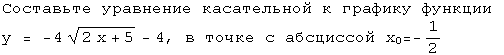 напишите уравнение касательной к графику функции у=-4 * (корень из 2х+5) -4в точке х нулевое = -1/2