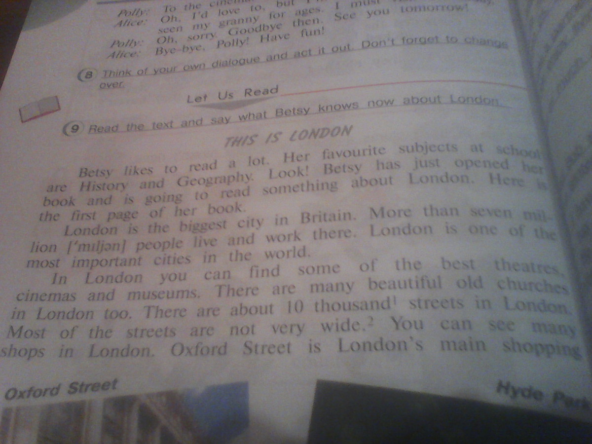 Бетси любит много читать. Ее любимые предметы в школе это история и география. Смтри! Бетси открыла свою книгу и начала читать кое-что о Лондоне. Это первая страница ее книги.