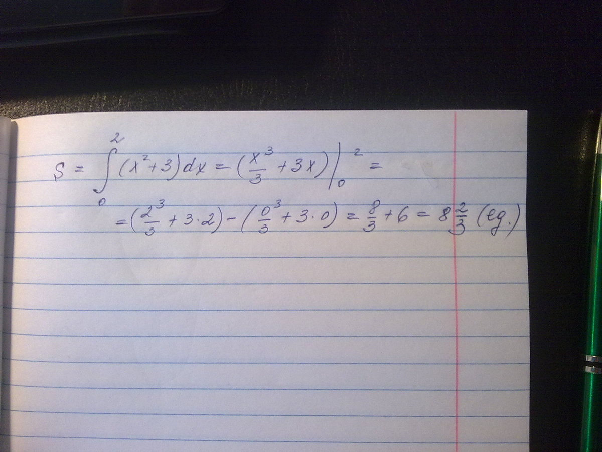 S=F(2)-F(0)=2^3/3+3*2-0-0=8/3+6=8 2/3