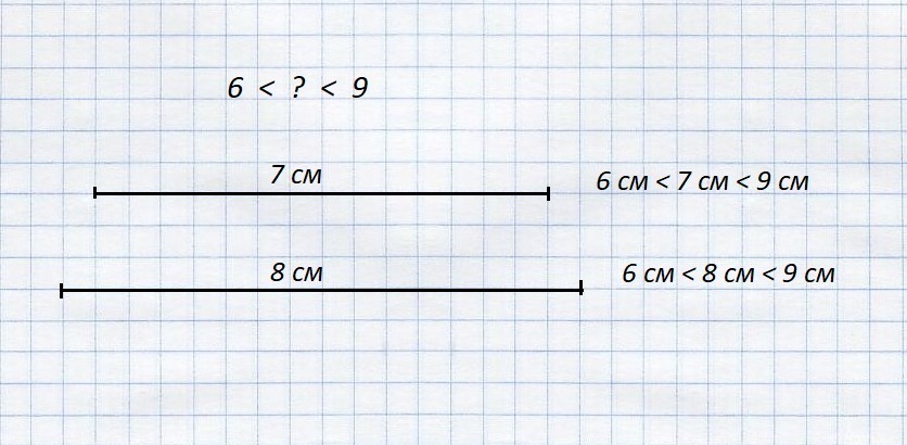 начерти 2 отрезка разной длины так, что-бы длина каждого отрезка была больше 6 см, но меньше 9см