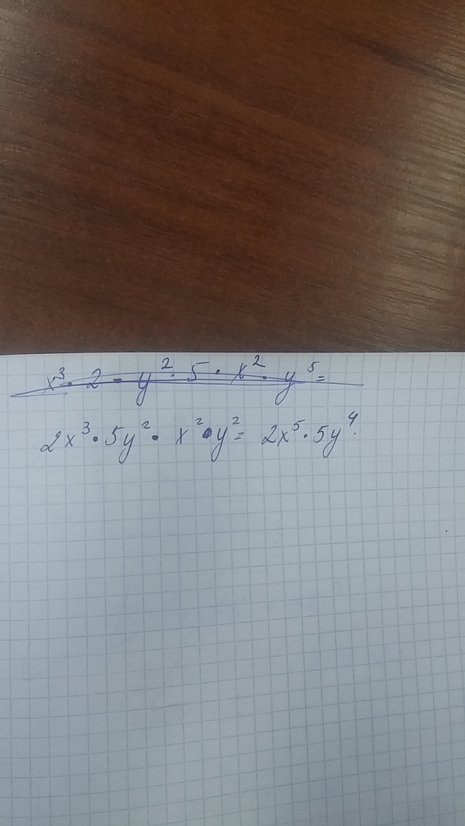 x в третей степени умножить на 2 умножить y во 2й степени умножить на 5 умножить x во 2й степени умножить на y в 5 той степени