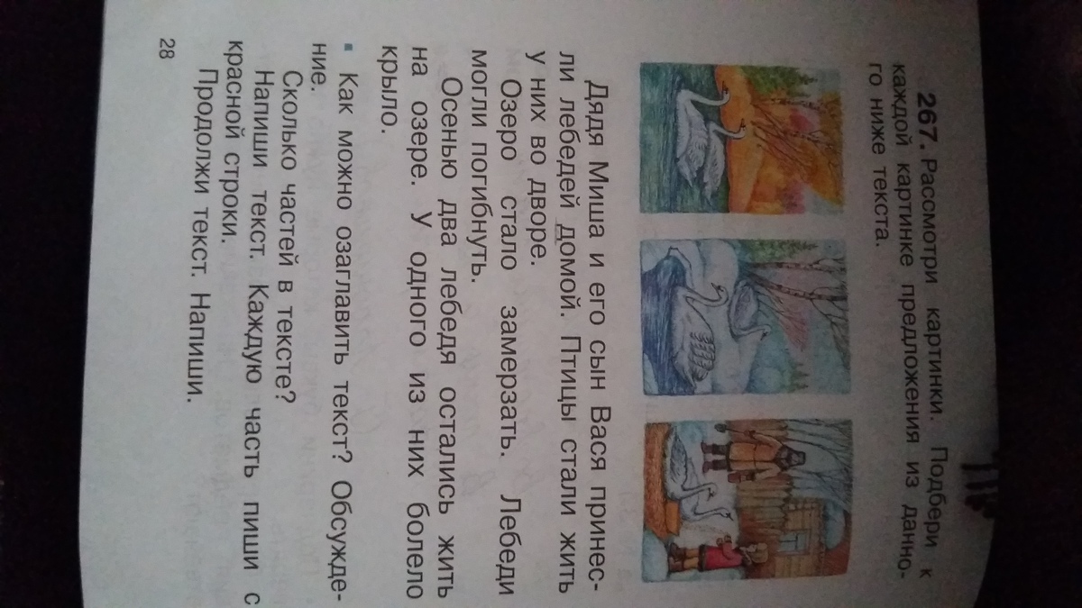 1 часть. Осенью два лебедя остались жить на озере. У одного из них болело крыло. (картинка 1)