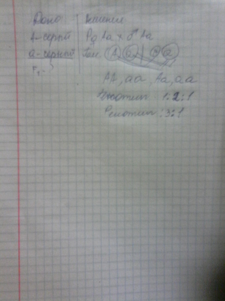 При скрещивании серой и черной мышей получено 30 потомков,из них 15 были черными.Известно,что серая окраска доминирует над черной.Каков генотип мышей родительского покаления.
