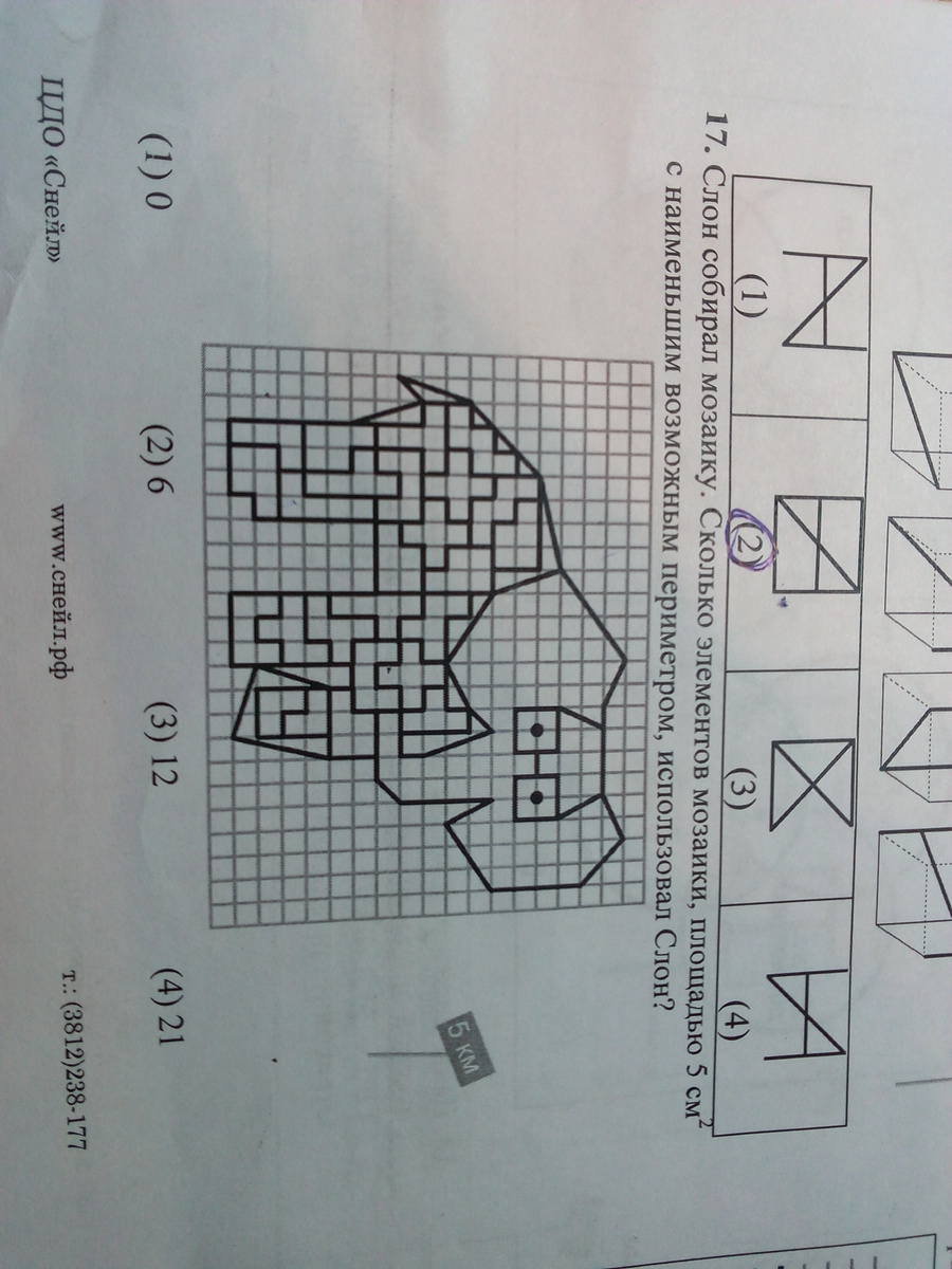 Слон собирал мозайку.Сколько элементов мозайки,площадью 5квадратных см. с наименьшим возможным периметром,использовал Слон?