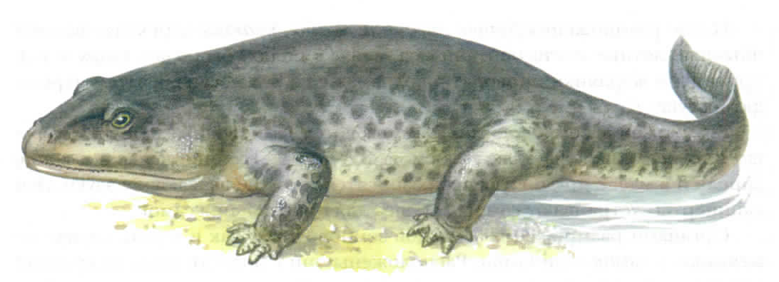 2) Тесная связь земноводных с водой, а также строение и образ жизни их личинок указывают на присхождение этих животных от рыб. Удалось найти окаменелые остатки вымерших земноводных. Кожа их имела чешуи, а череп подил на череп кистепёрых рыб.