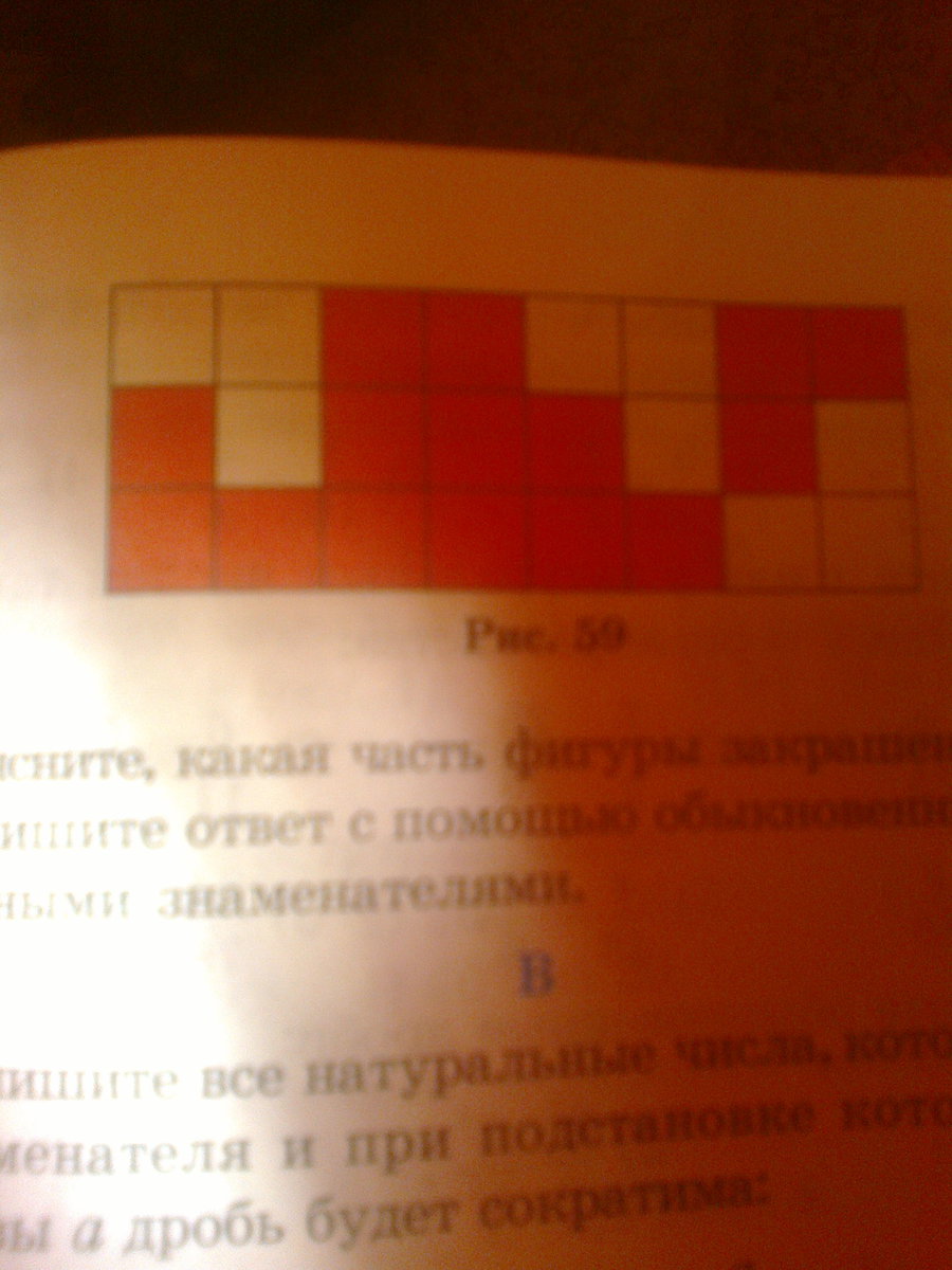 Выясните, какая часть фигуры закрашена (рис.59) Запишите ответ с помощью обыкновенных дробей с разными знаменателями.