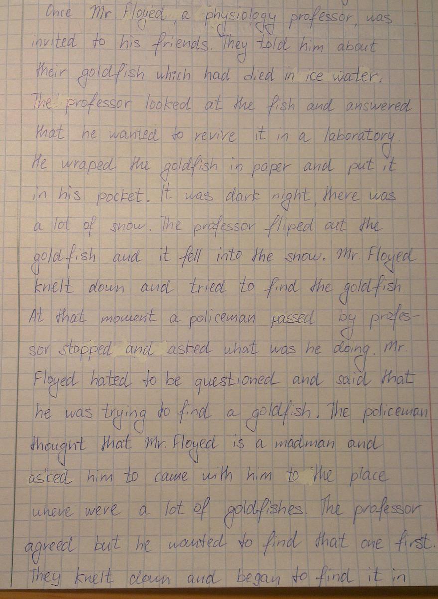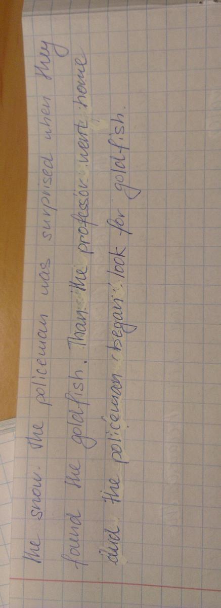 5) goldfish - не употребляется во мн. числе (нельзя добавлять окончание es - у Вас в одном случае есть - уберите (там, где полицейский говорит, что у него есть одно место, где много золотых рыбок)
