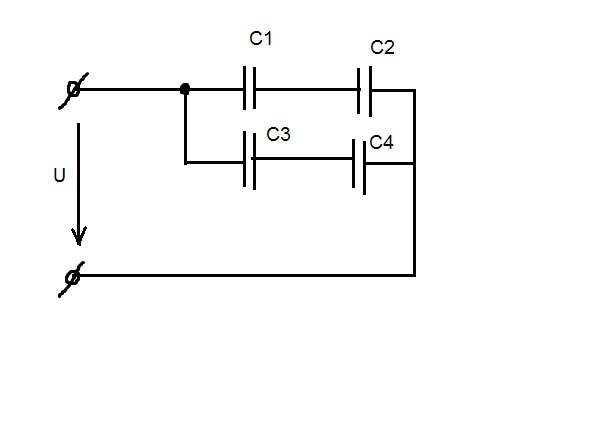 Найти С эквивалентное, если дано:C_{1} =4мкФ C_{2} =4мкФ C_{3}  =8мкФ C_{4}  =2мкФ