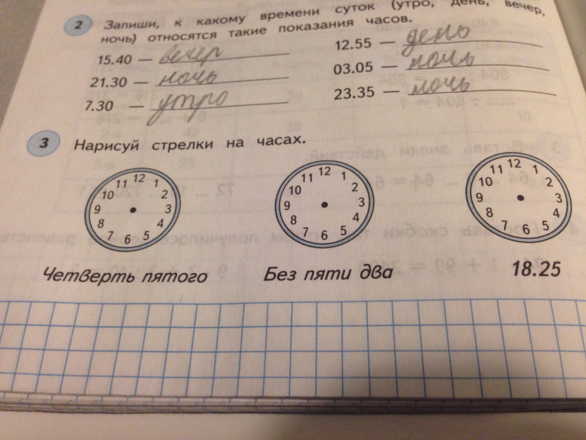 В первом маленькая стрелочка на 4 ,а длинная на 3.