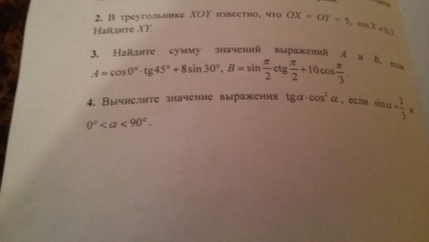 Тангенс-это отношение синуса к косинусу,подставляешь значения,получится 3/4