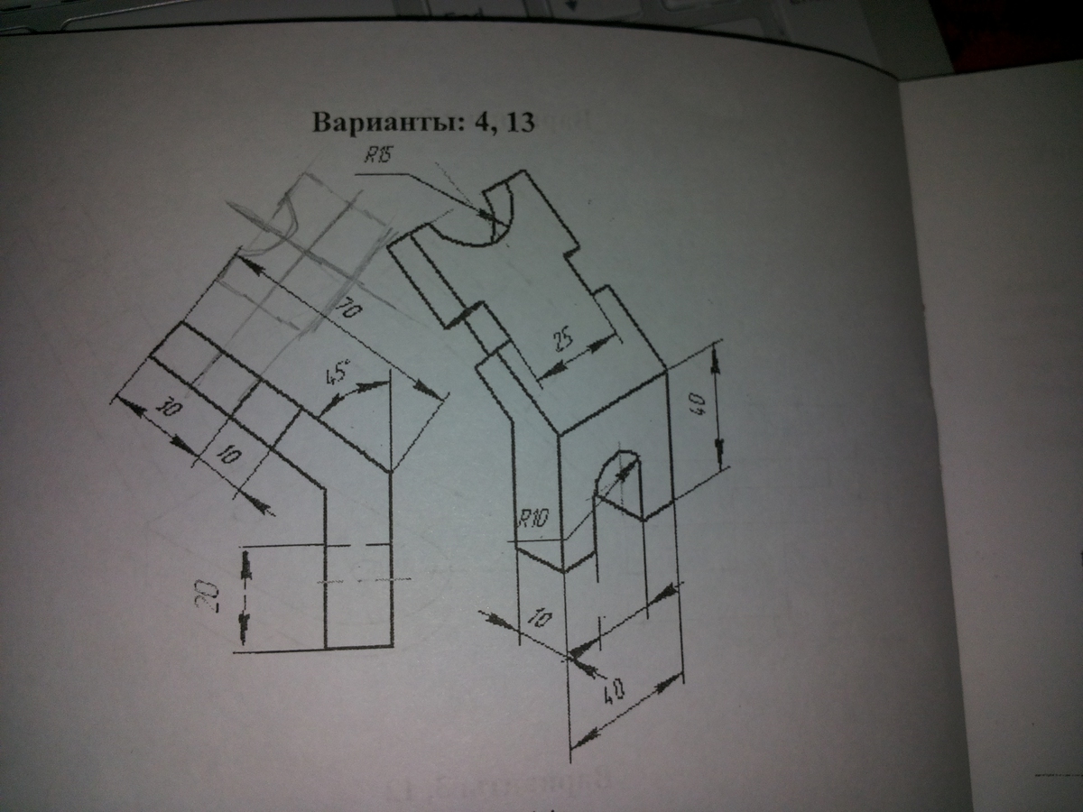 Начертить дополнительный вид в проекционной связи и местный вид без проекционной связи