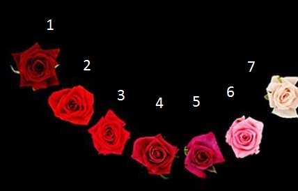 Окраска цветков у роз наследуется по типу кумулятивной полимерии. Существует 7 градаций цвета (от самого тёмного до самого светлого, см. рис.).